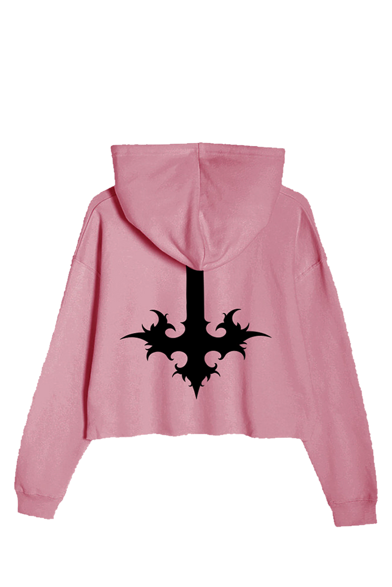 Our METAL HEART Crop Hoodie has an incredibly soft, warm and comfortable feel and is perfect for layering. With a screen-printed, black metal heart logo design that says "XRAEART" on the front and gothic style crosses on the sleeves and back, this design is sure to turn heads!