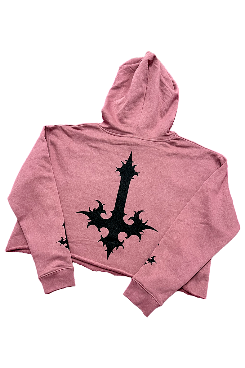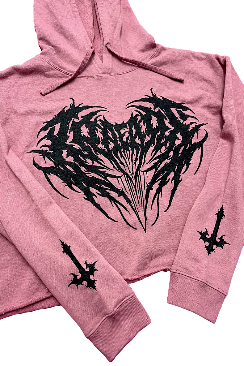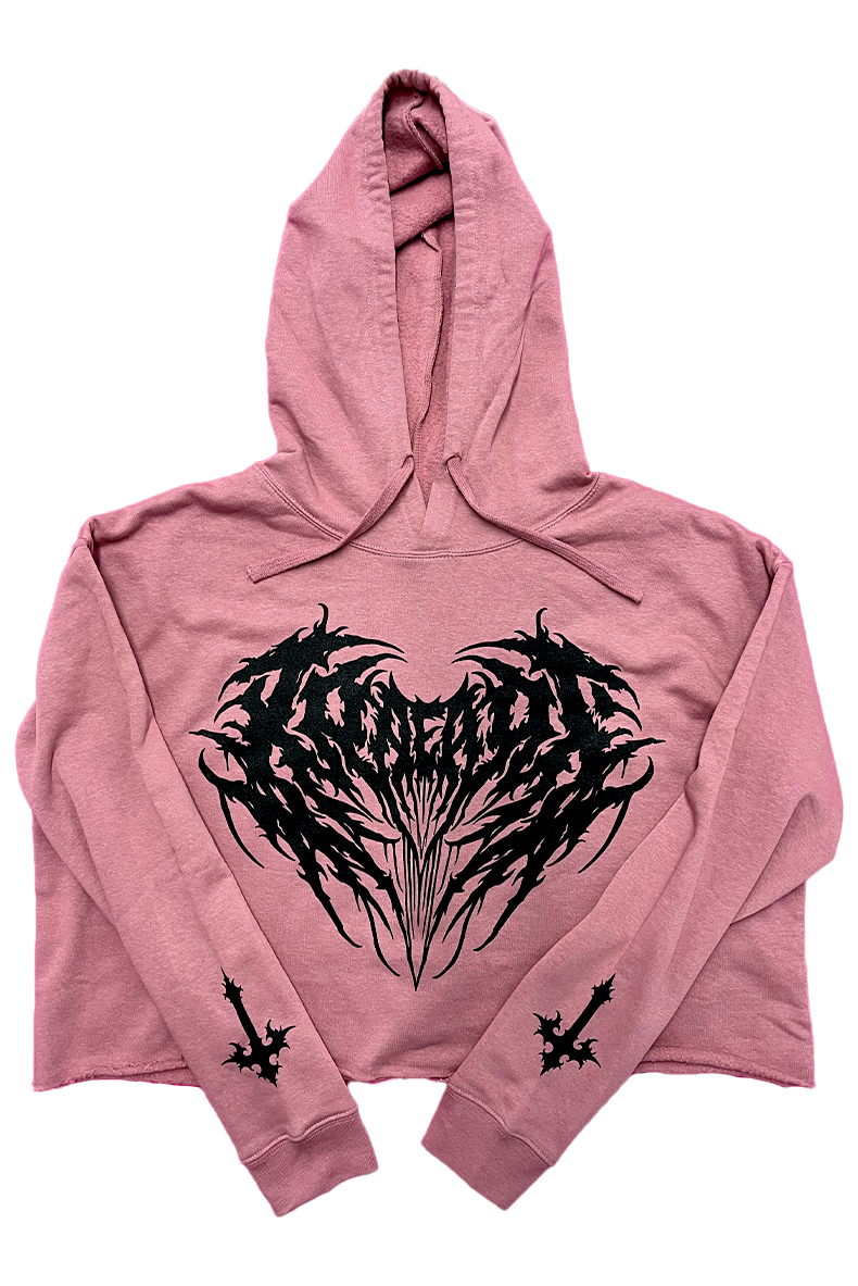 METAL HEART Crop Hoodie (Mauve/Black)