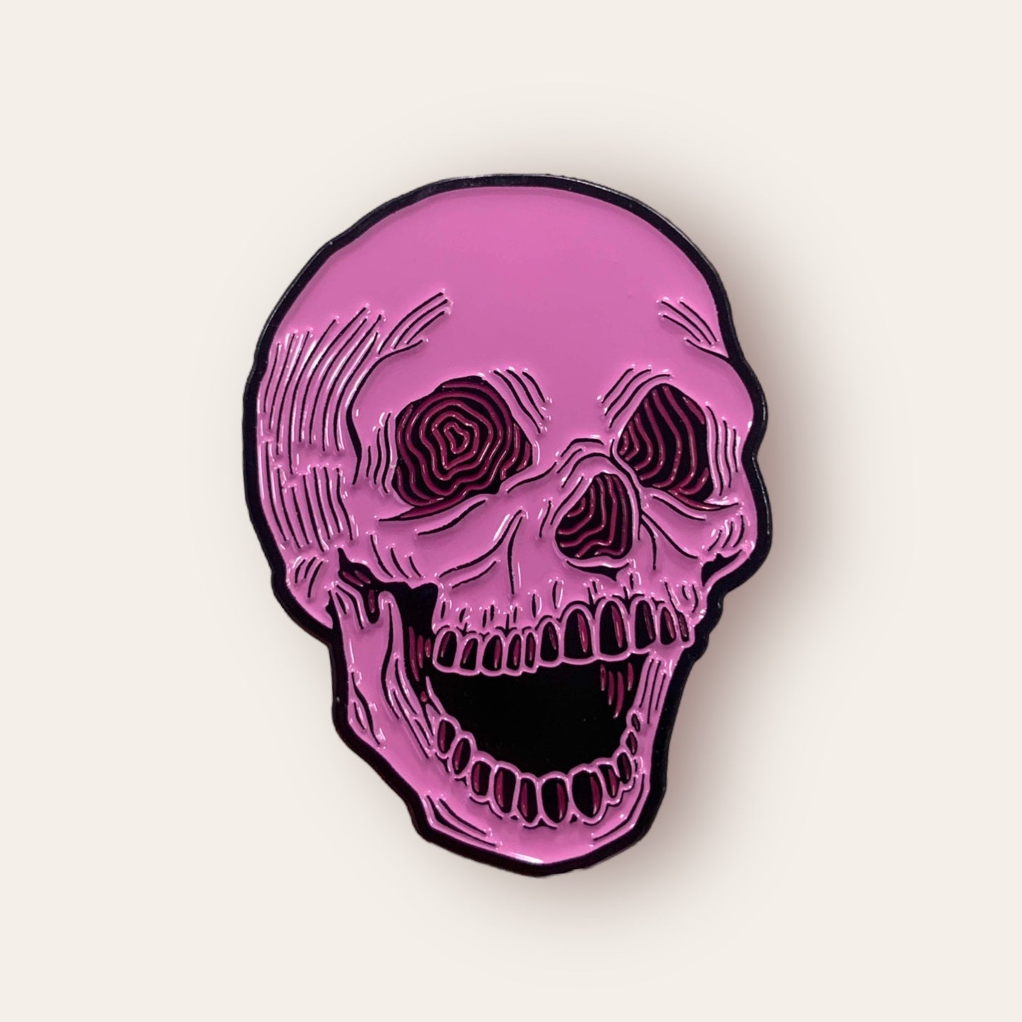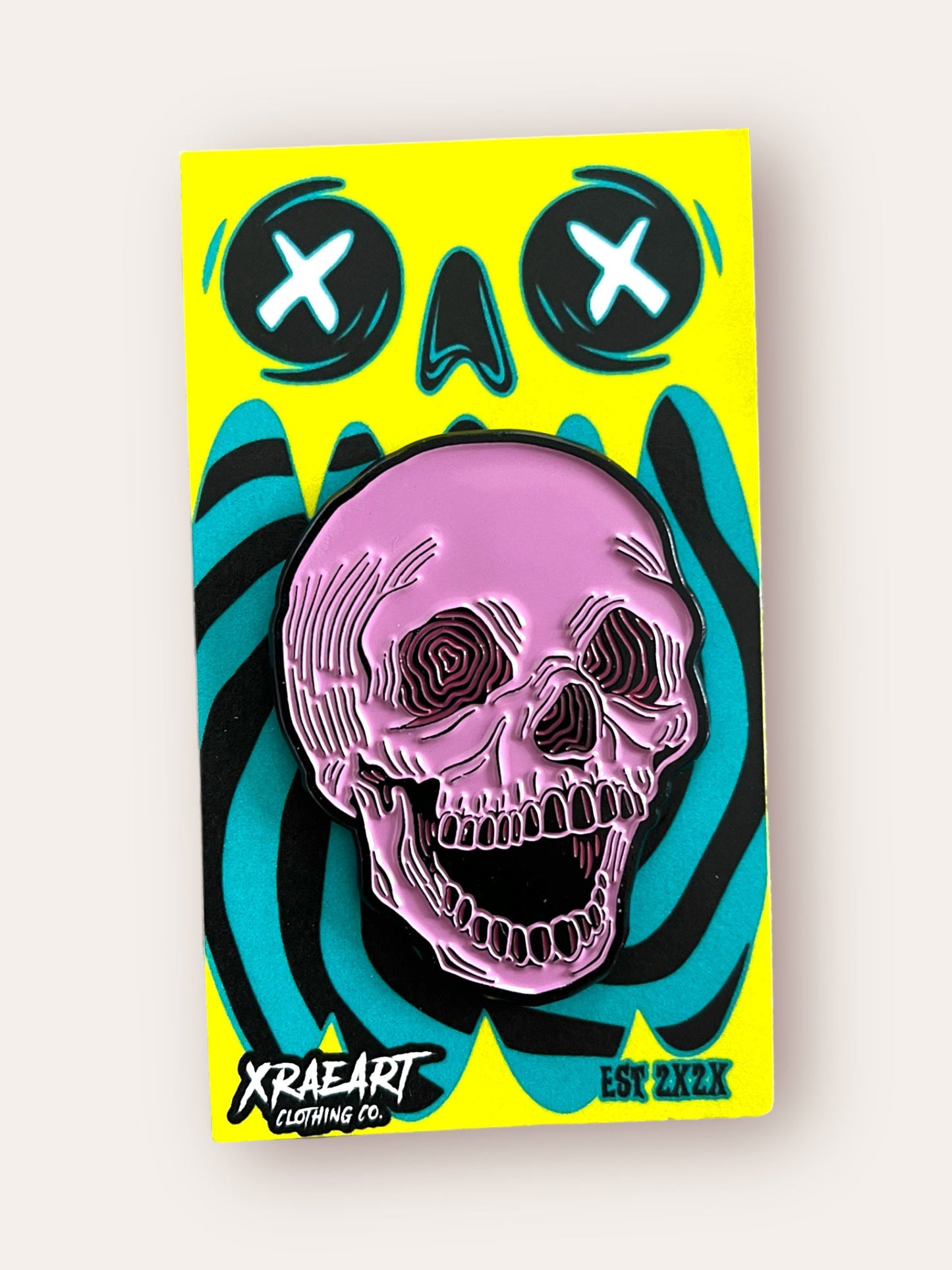 1-3/4 inch wide soft enamel pin of our Pink Xray Skull design !