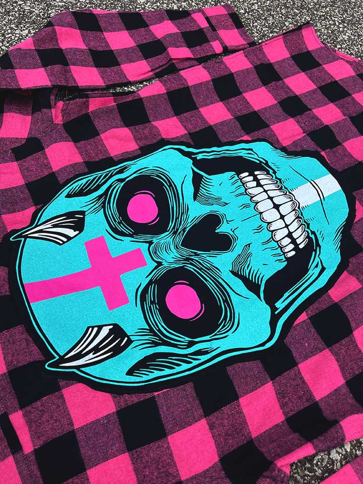 Our best-selling flannels are now available! Flannels feature our original screen-printed artwork, cut out and sewn to the back. Lightweight yet durable, our flannels are ideal for fall and winter weather! These are made to order and may take 2-4 weeks before being created and shipped to you. Check our size guide for sizing details before you order! Flannel sales are final.