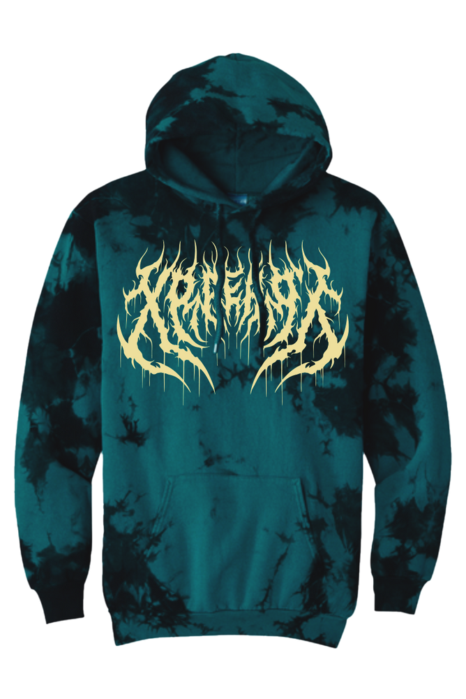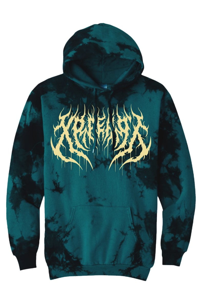 Our SLEEP TIGHT design on a soft and comfortable hoodie featuring our oversized print demon succubus woman.. Made with high-quality materials, this hoodie is perfect for those who appreciate original dark art and want to make a bold statement. Printed in a light yellow print on a black and teal tie-dye pullover hoodie. Front print features our brand name XRAEART in a custom drawn metal font. All hoodies are unique in their tie-dye pattern!