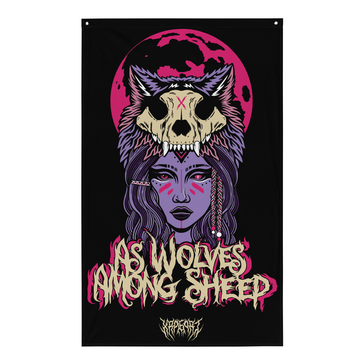 Our AS WOLVES design in purple, pink and bone colors! Tapestry won’t crease or shrink thanks to the polyester material and will last a long time. Has two iron grommet holes at the top for durable hanging.