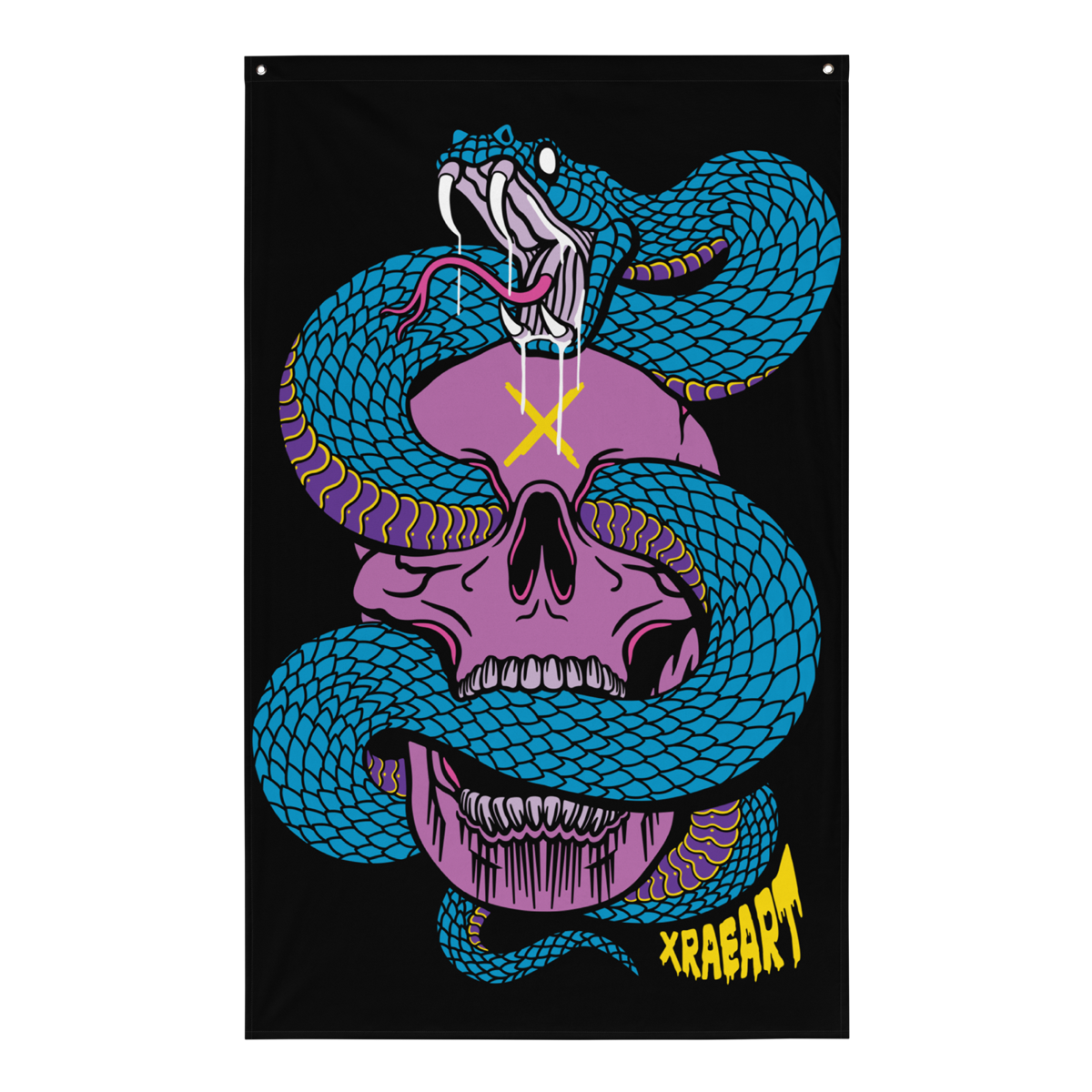 Our GUTTER MAGICK features a vibrant vicious snake twisting through a purple skull. Tapestry won’t crease or shrink thanks to the polyester material and will last a long time. Has two iron grommet holes at the top for durable hanging.
