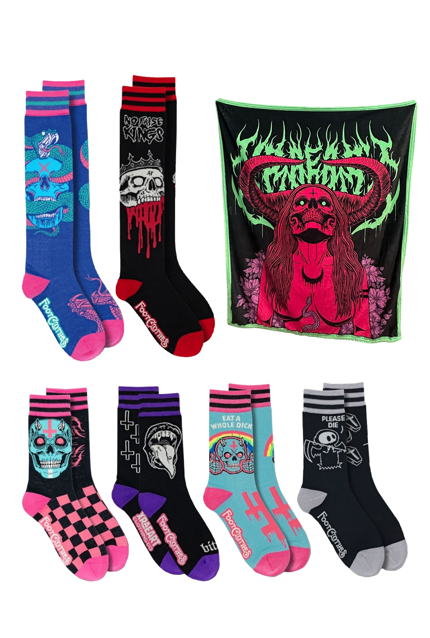 Our EXCLUSIVE COLLAB with FootClothes! The coolest socks and plush blanket that you never knew you needed – until now.