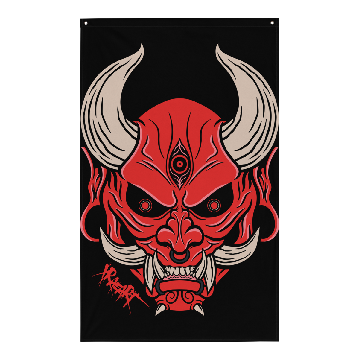 Breathe life into your walls with this bold and daring BUSHIDO Tapestry. Featuring an evil grin and highlighted with a powerful red, this wall art flag is perfect for those who love taking risks and embracing challenges! Tapestry won’t crease or shrink thanks to the polyester material and will last a long time. Has two iron grommet holes at the top for durable hanging.
