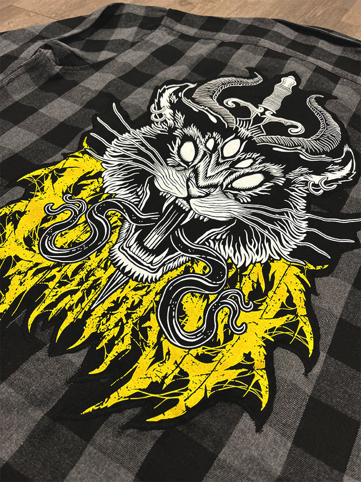 Our best-selling flannels are now available! Flannels feature our original screen-printed artwork, cut out and sewn to the back. Lightweight yet durable, our flannels are ideal for fall and winter weather! These are made to order and may take 2-4 weeks before being created and shipped to you. Check our size guide for sizing details before you order! Flannel sales are final. Flannel size shown in images is an X-Large.